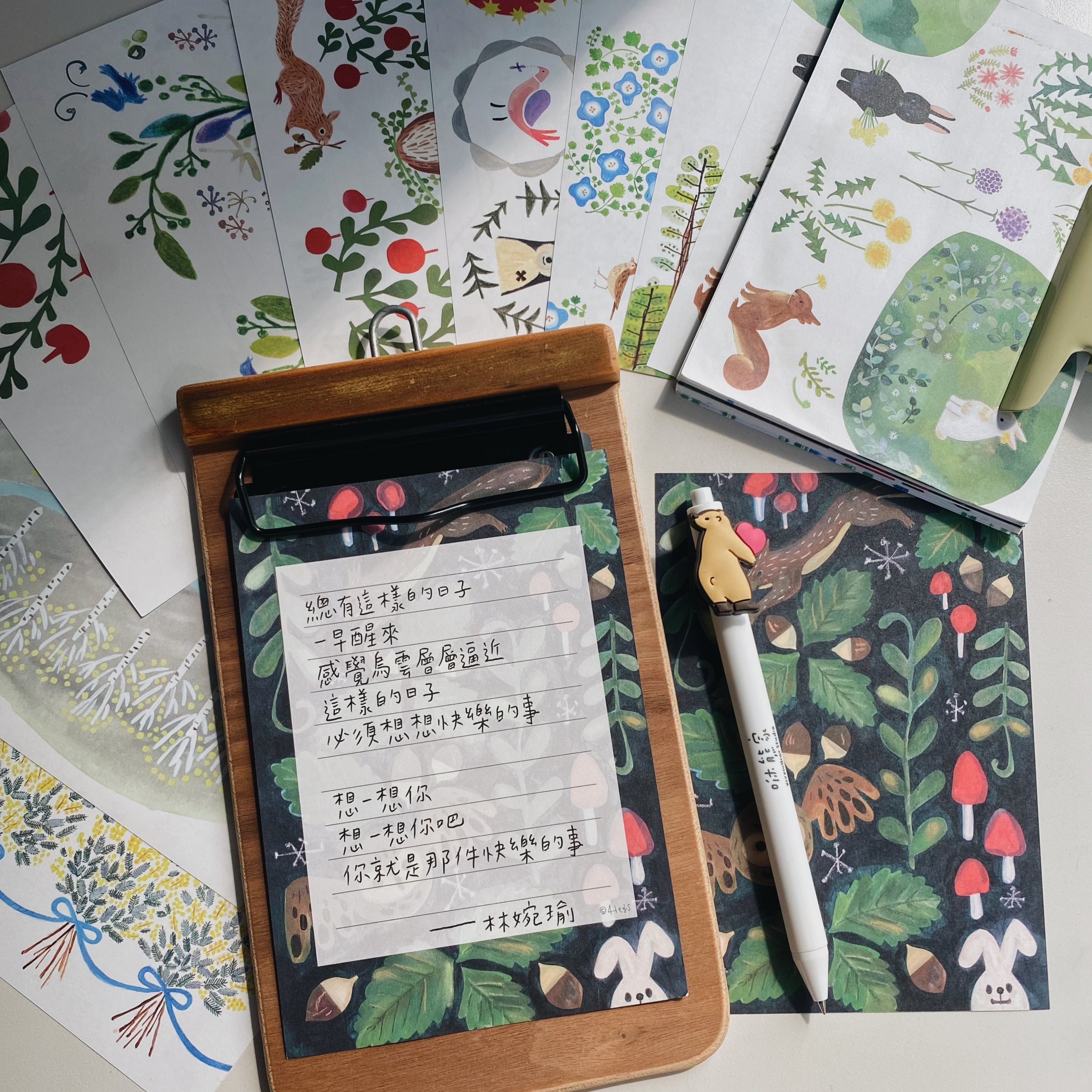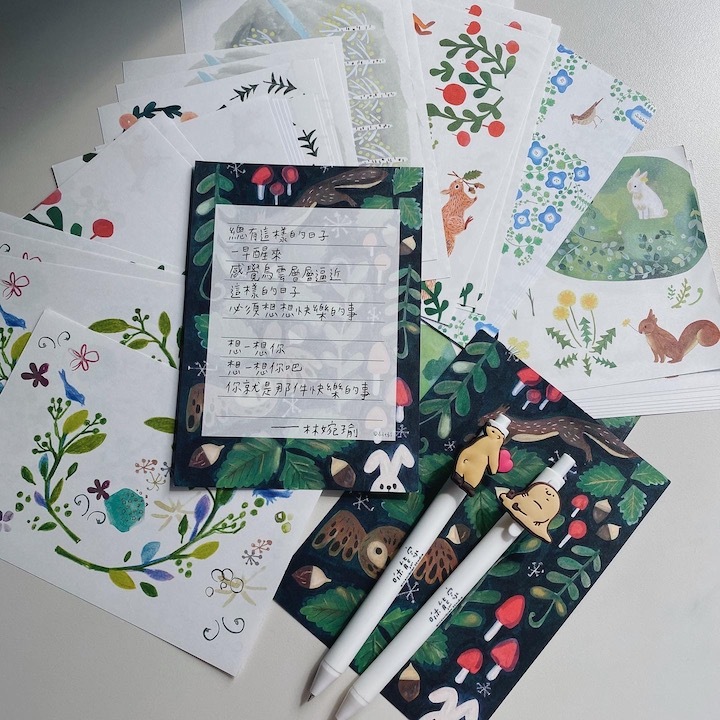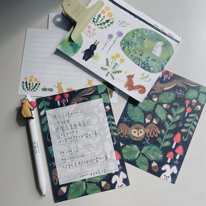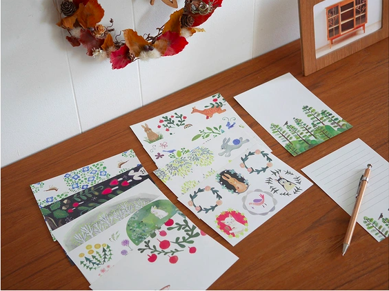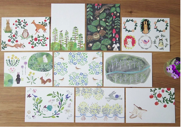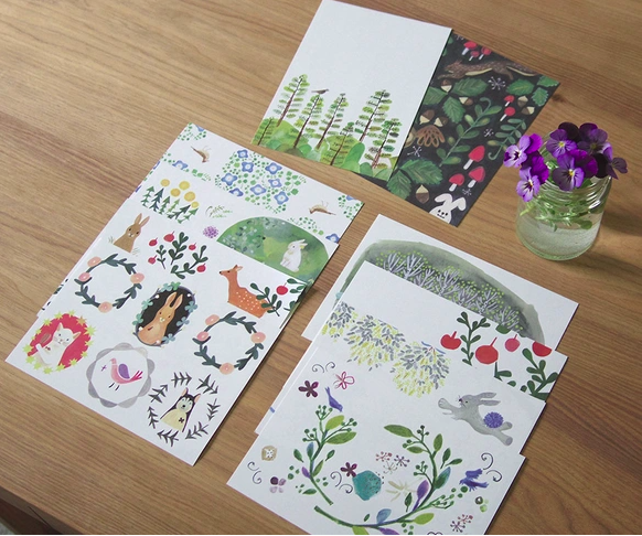 森林插畫 信紙 一筆箋 A款 (10種圖案)| 日本 4legs