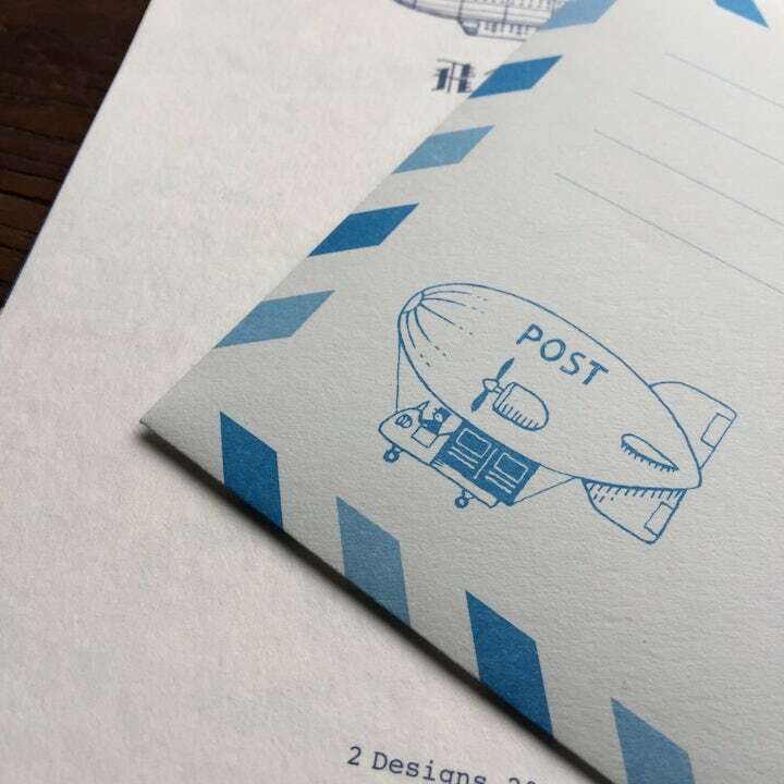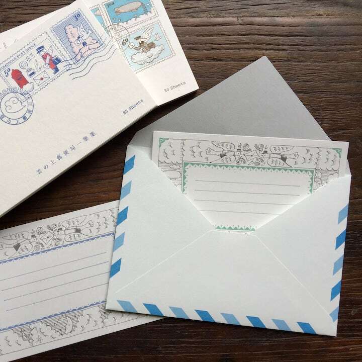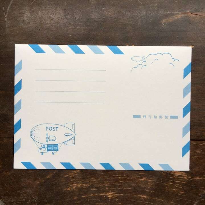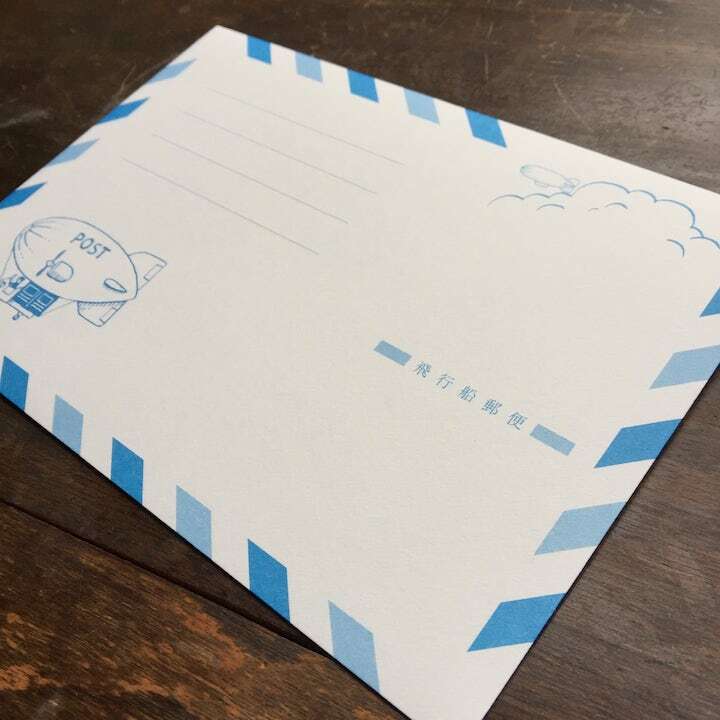 和雲の上郵便局一筆箋『午前の手紙』和『午後の手紙』搭配的飛行船郵便封筒