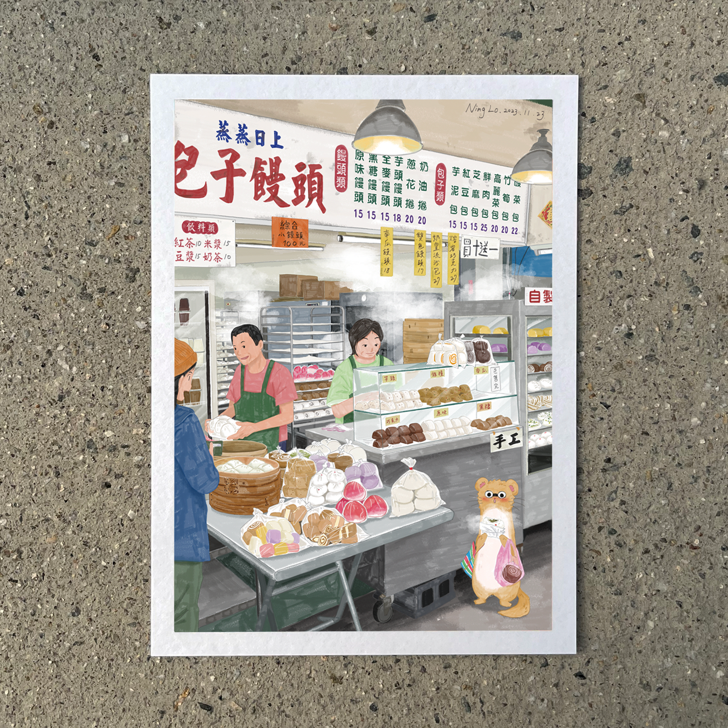 蒸蒸日上包子饅頭_活所在系列 插畫明信片|羅寗 Lo Ning