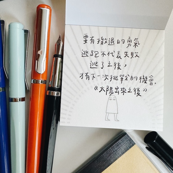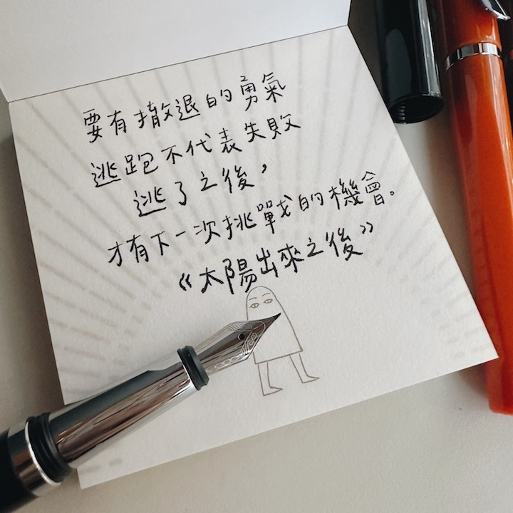 書法尖(美工尖) 利用折彎的筆尖面,去接觸紙面,