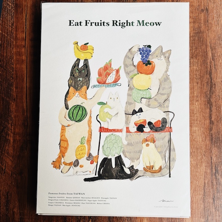 台灣水果貓圖鑑 A3海報 複製畫|SEVERUS LIAN 里恩太太