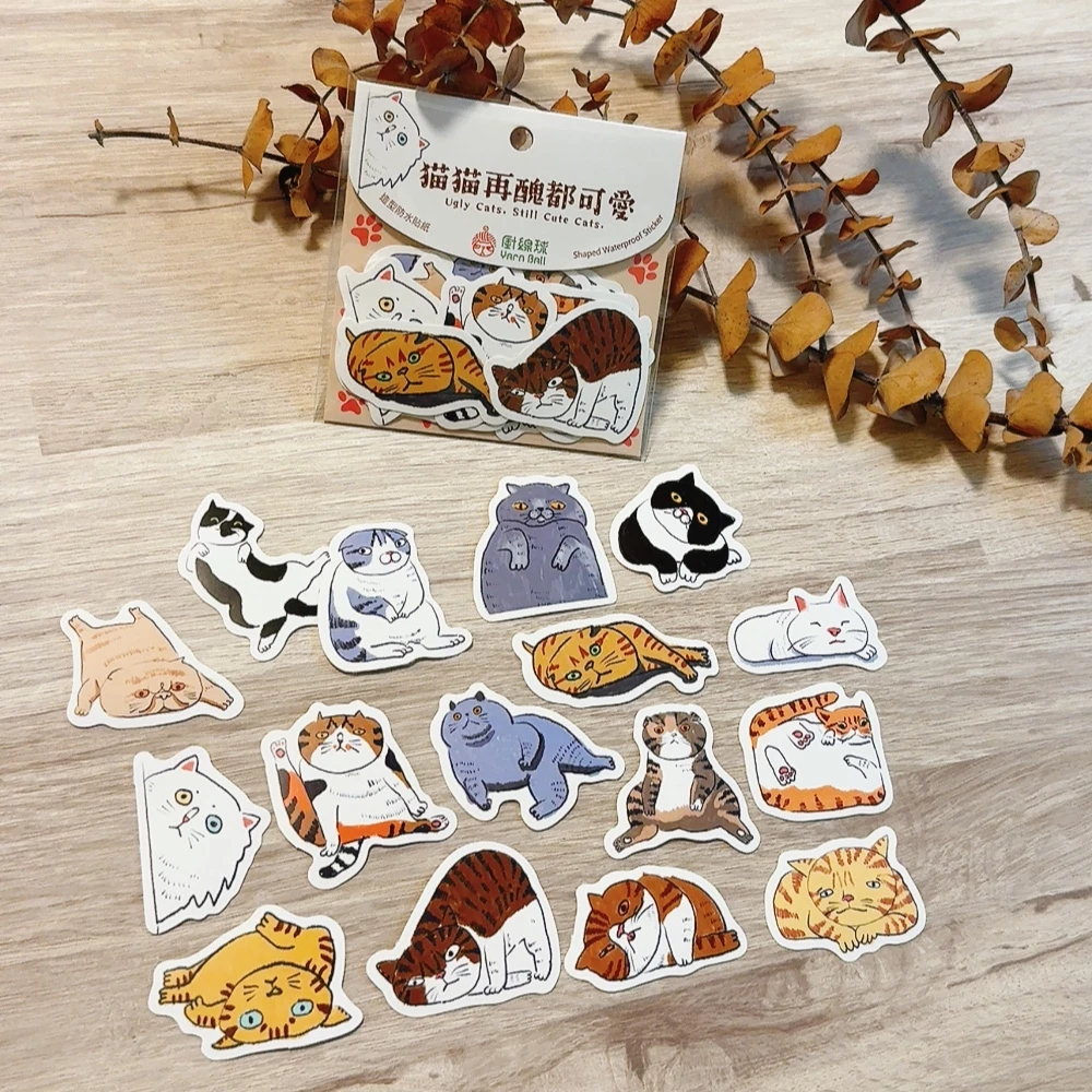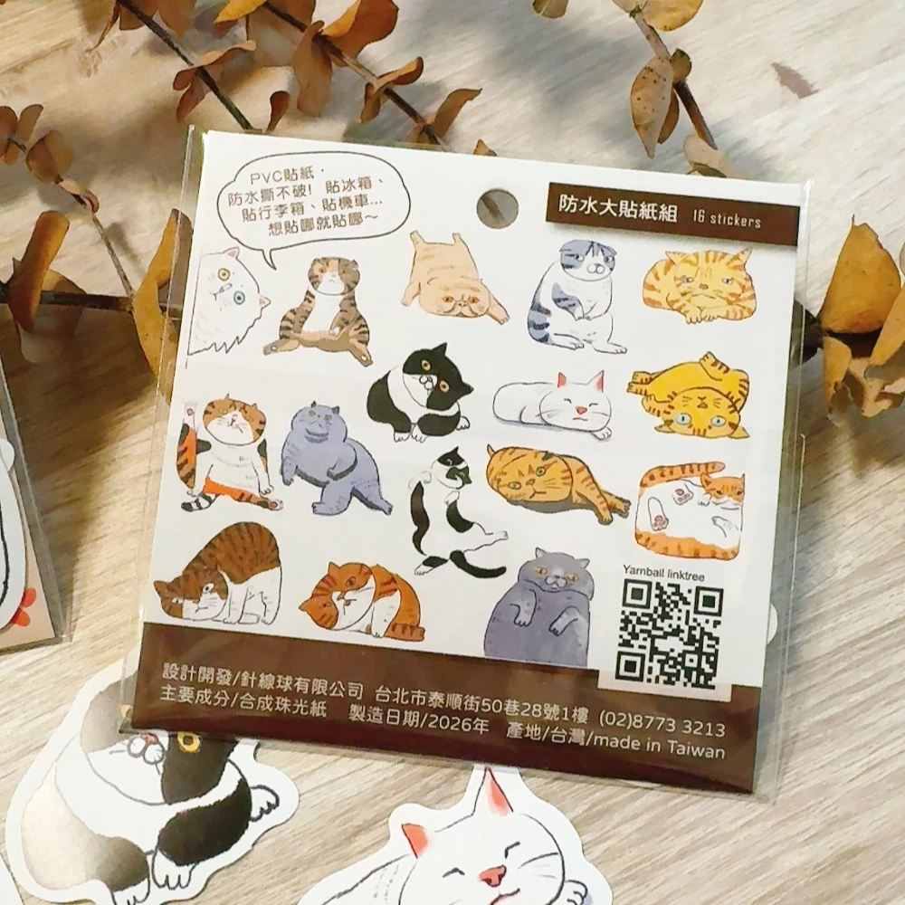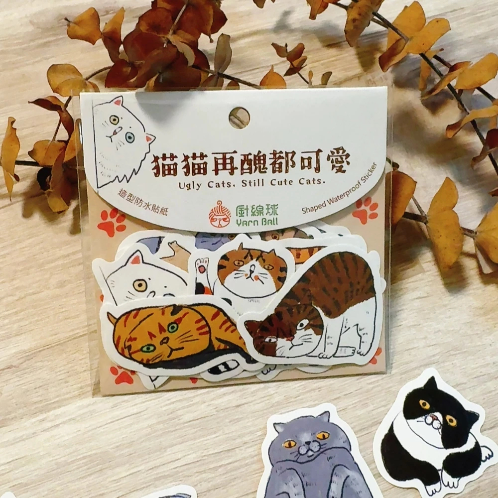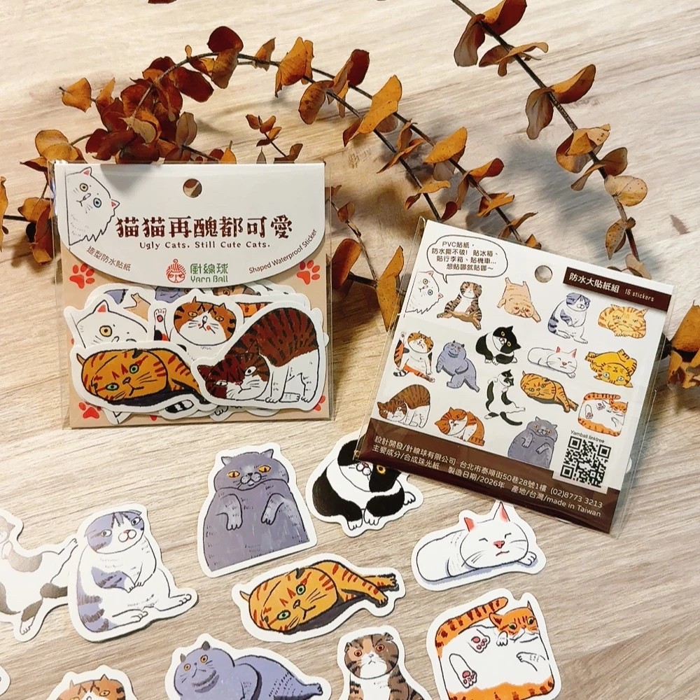 貓貓再醜都可愛 16入 防水貼紙包|針線球
