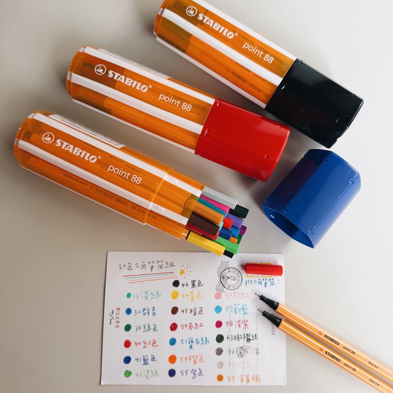 0.4mm 細緻彩繪筆 簽字筆 20色六角筆筒組|德國STABILO