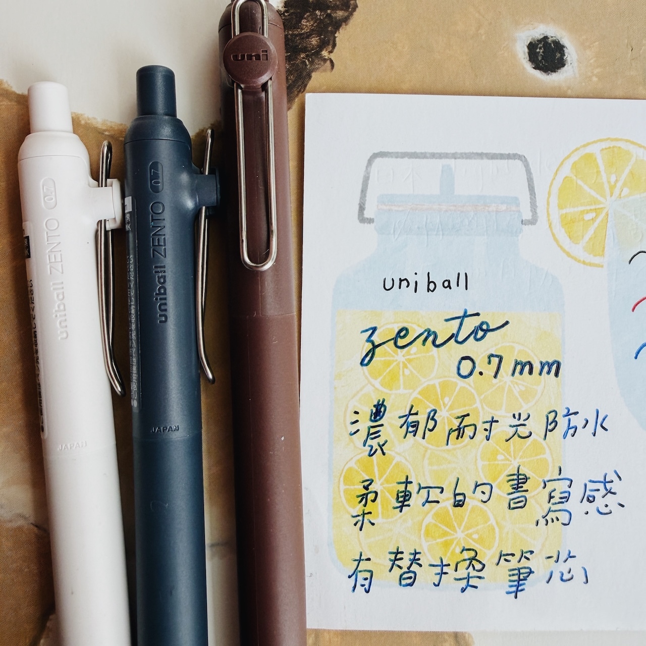 uniball ZENTO水性圓珠筆,筆芯將採用全新研發的ZENTO墨水,色彩濃厚而且耐光防水
