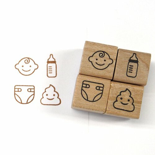 嬰兒寶寶 手帳專用系列 4入木頭印章|日本KODOMO NO KAO