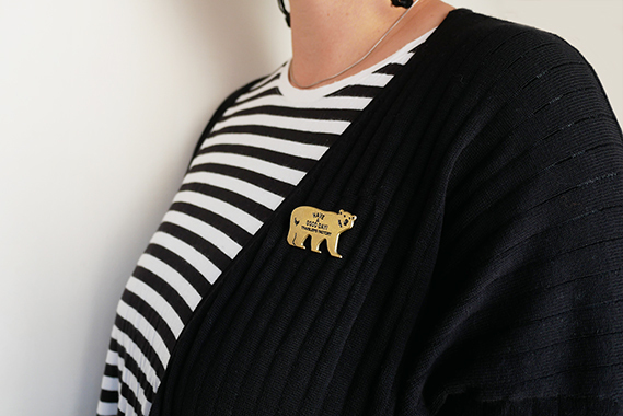 由日本東京職人手工製作,黃銅材質、背面為別針