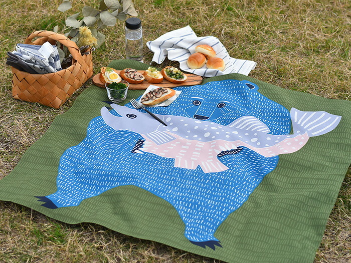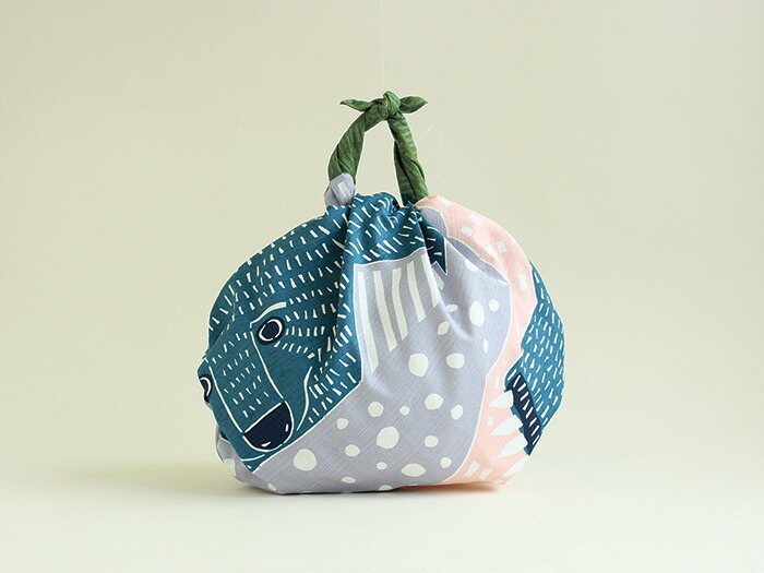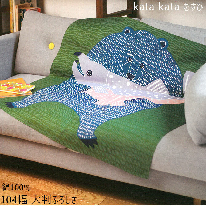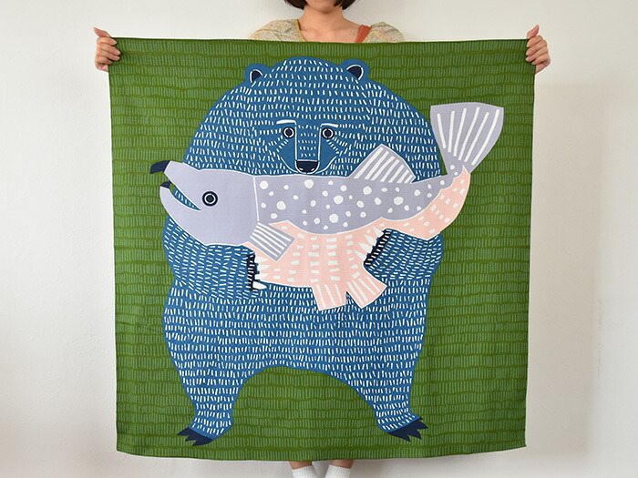 熊與鮭魚 100cm 防潑水加工 大茶巾 風呂敷|日本kata kata