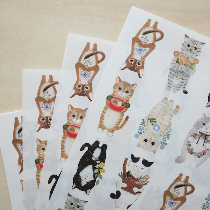 貓咪2 插畫包裝紙 A4尺寸|日本 4legs