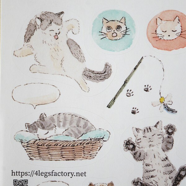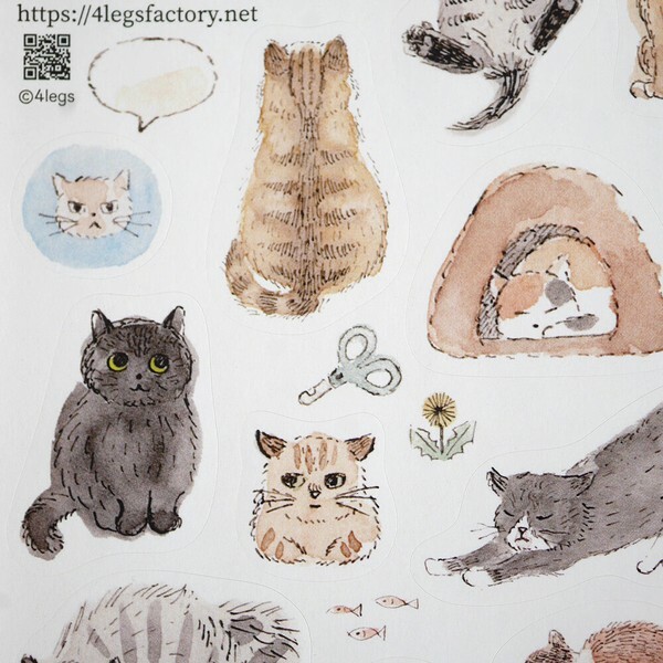 貓咪 水彩插畫貼紙|日本 4legs