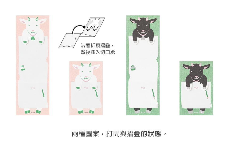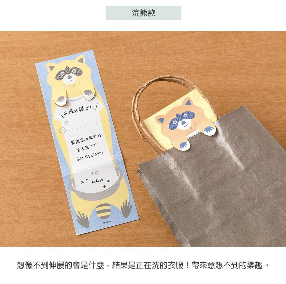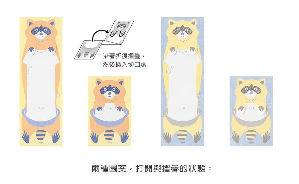 寫下訊息後摺疊,訊息會被隱藏,打開時動物的身體會伸展,並顯示出訊息,這是一款有趣的設計便條紙。無論是收到的人還是發出的人,都會因為這樣的設計而露出微笑,成為溝通的起點