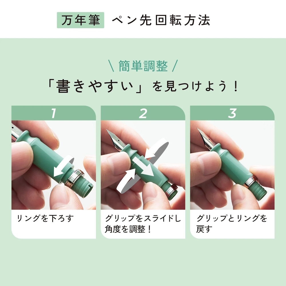 ▲ 轉開飾環將筆尖結構抽出來,可以二方向以 10 度來調整書寫角度