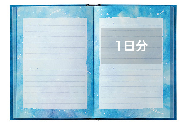 1頁配置了2天份的「1年日記」,總共有384天份(192頁),就算有時候突然想寫很多內容也沒有問題。