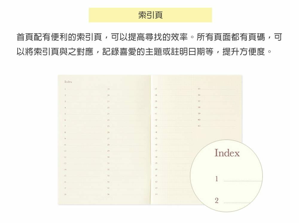 每一頁的邊緣設有指南線,以顏色分區,類別就更容易找尋