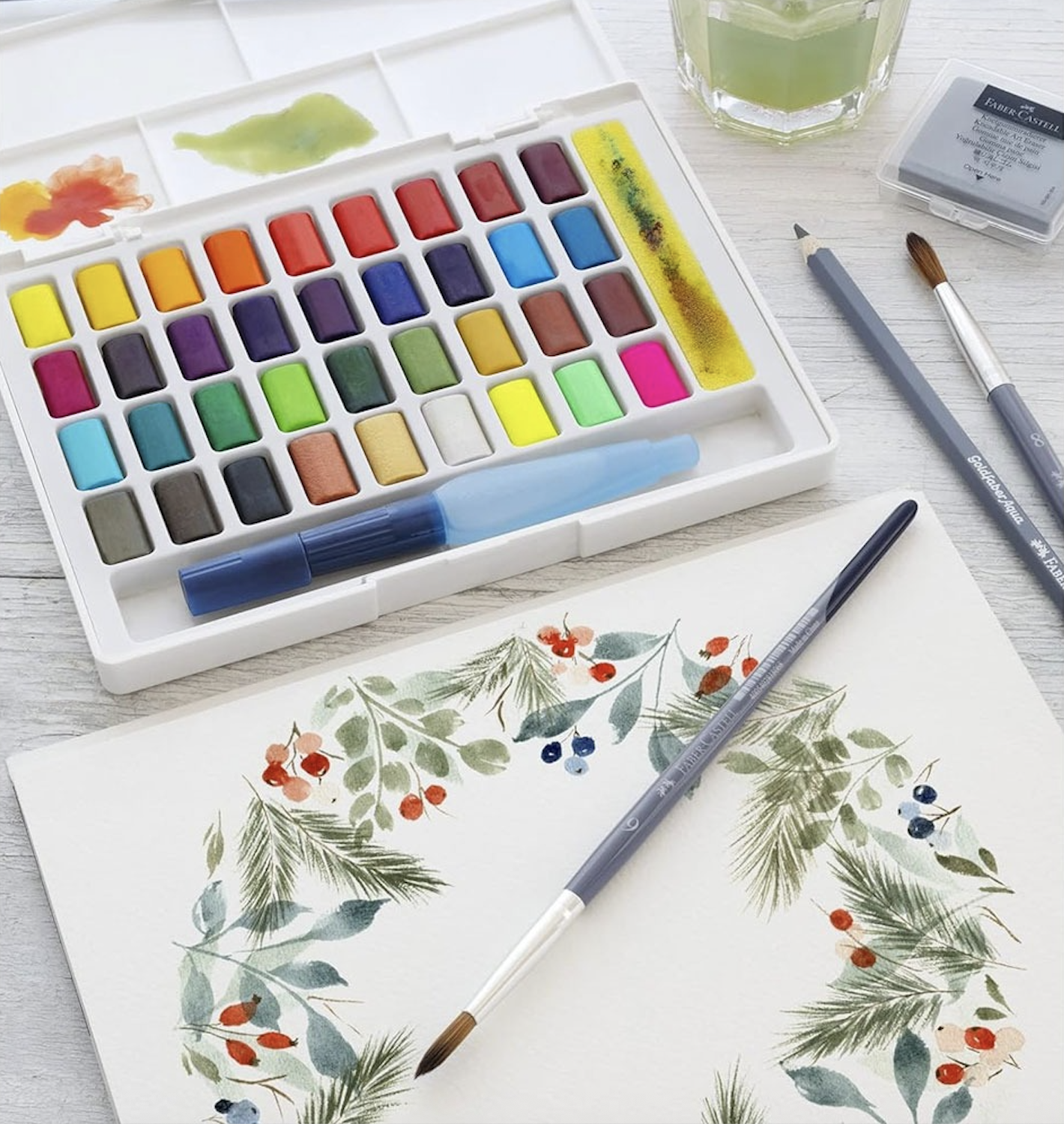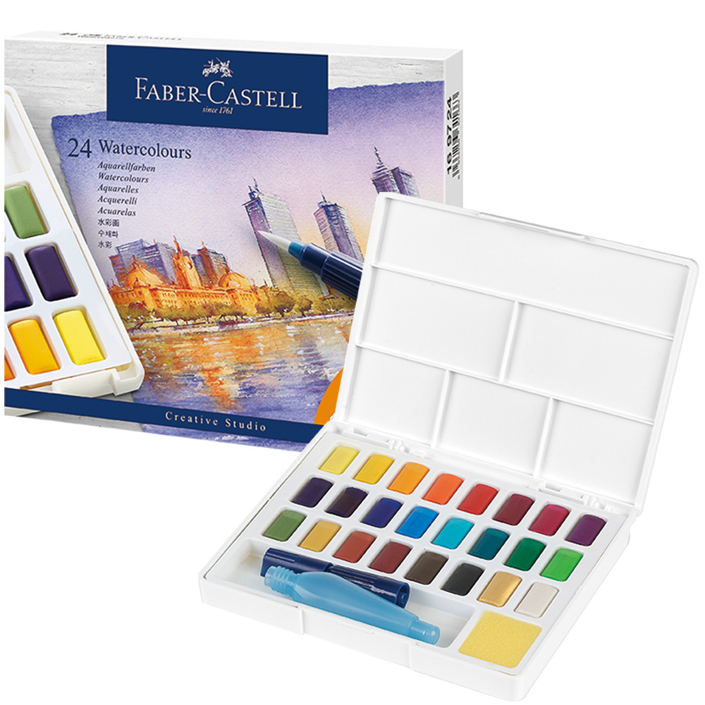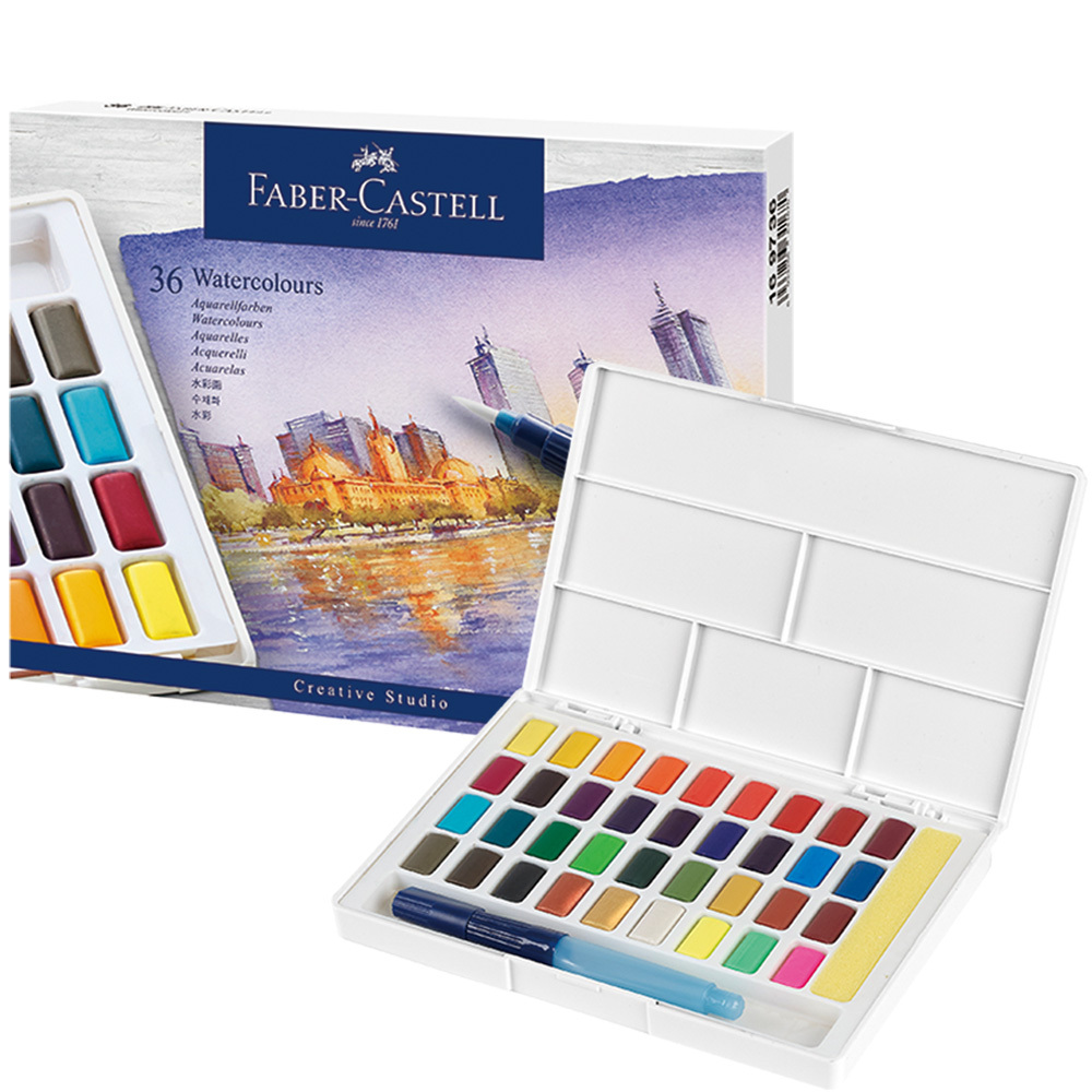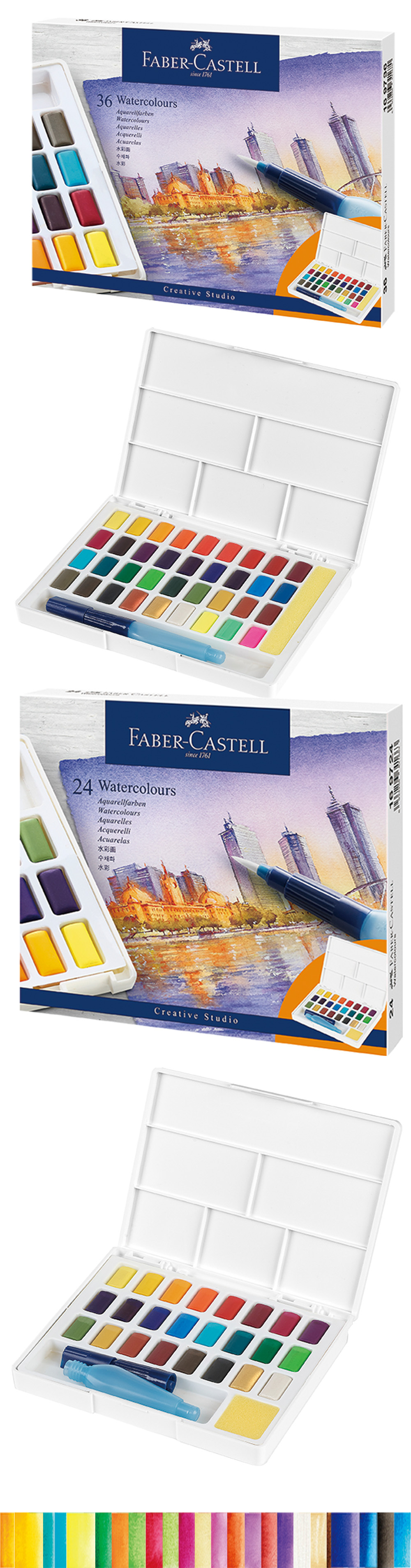 塊狀水彩組 附水彩筆 24色 36色|德國 Faber-Castell 輝柏
