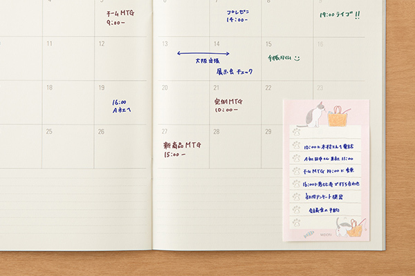 來自貓咪愛好者、插畫家小泉さよさん設計的可愛待辦事項便條紙,以柔和的貓咪插圖為特色,在打勾的肉球標記上,享受完成任務後的成就感,與可愛貓咪插圖帶來的放鬆感。