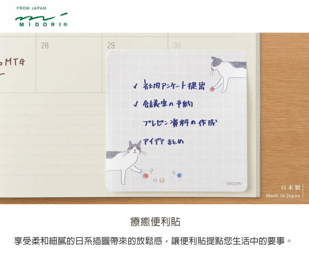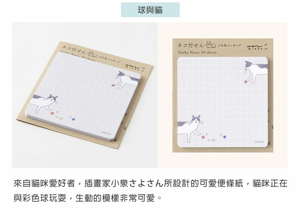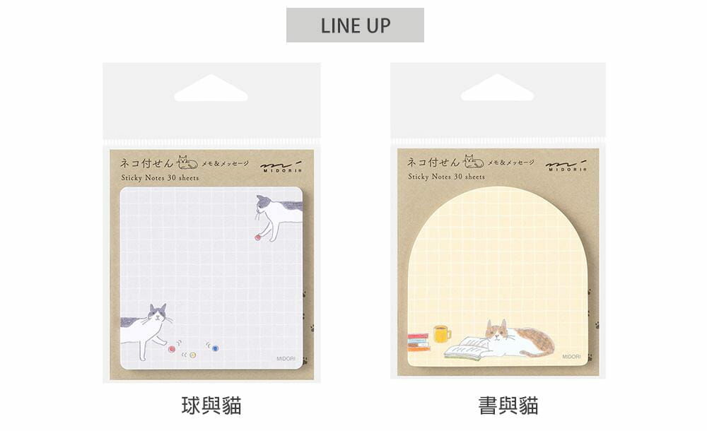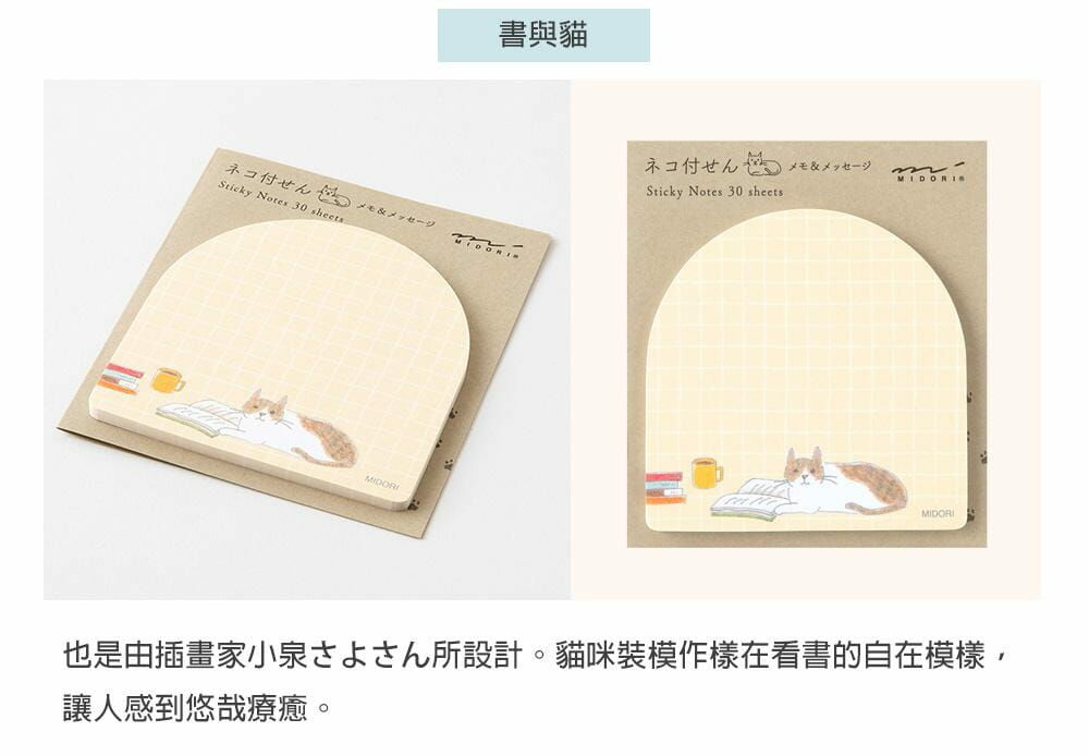 來自貓咪愛好者,插畫家小泉さよさん所設計的可愛便條紙。插畫呈現出柔和的氛圍,並在寬敞的空間,輕輕地敷上方格,使得文字書寫更加清晰易讀,非常適合做筆記或留言使用。