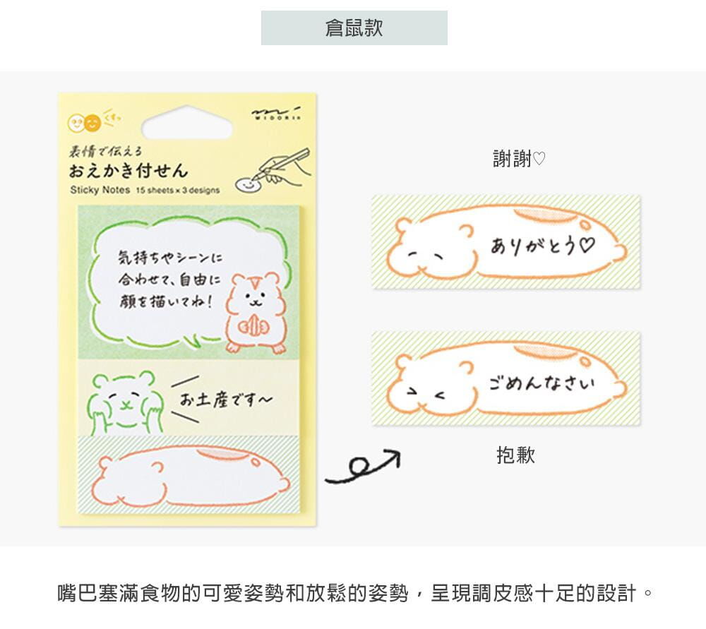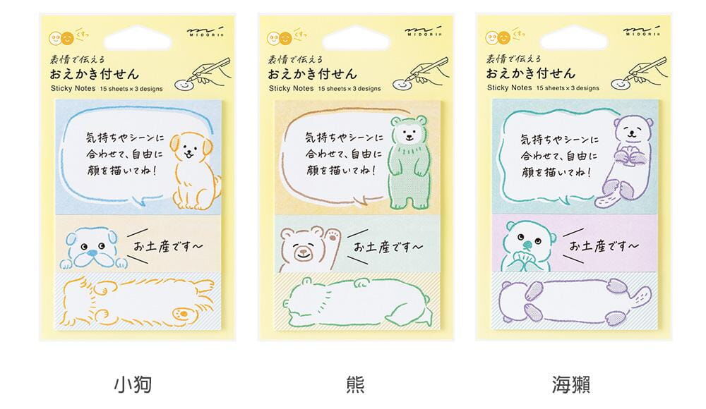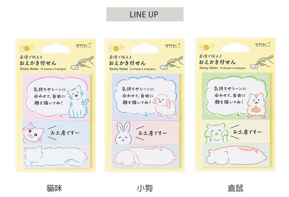 可愛動物 自由創作表情 45枚便利貼|日本MIDORI