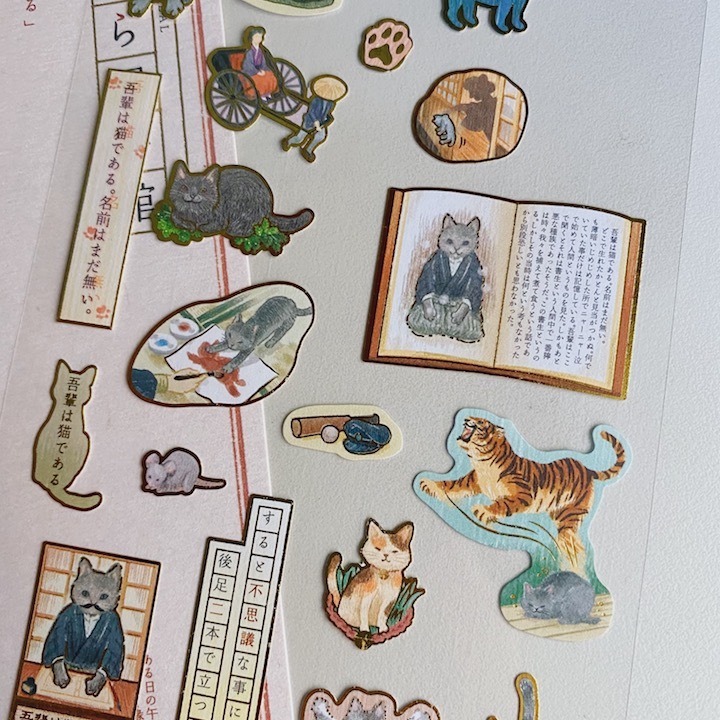 我是貓 手心上的圖書館系列 金箔壓印手帳貼紙|日本Kamio