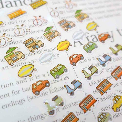 交通工具 復古像素風 雷射貼紙|日本Kamio