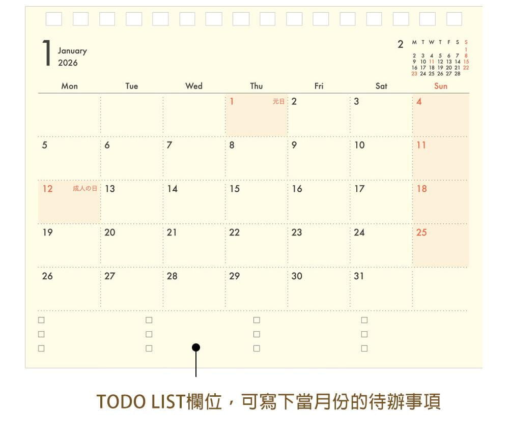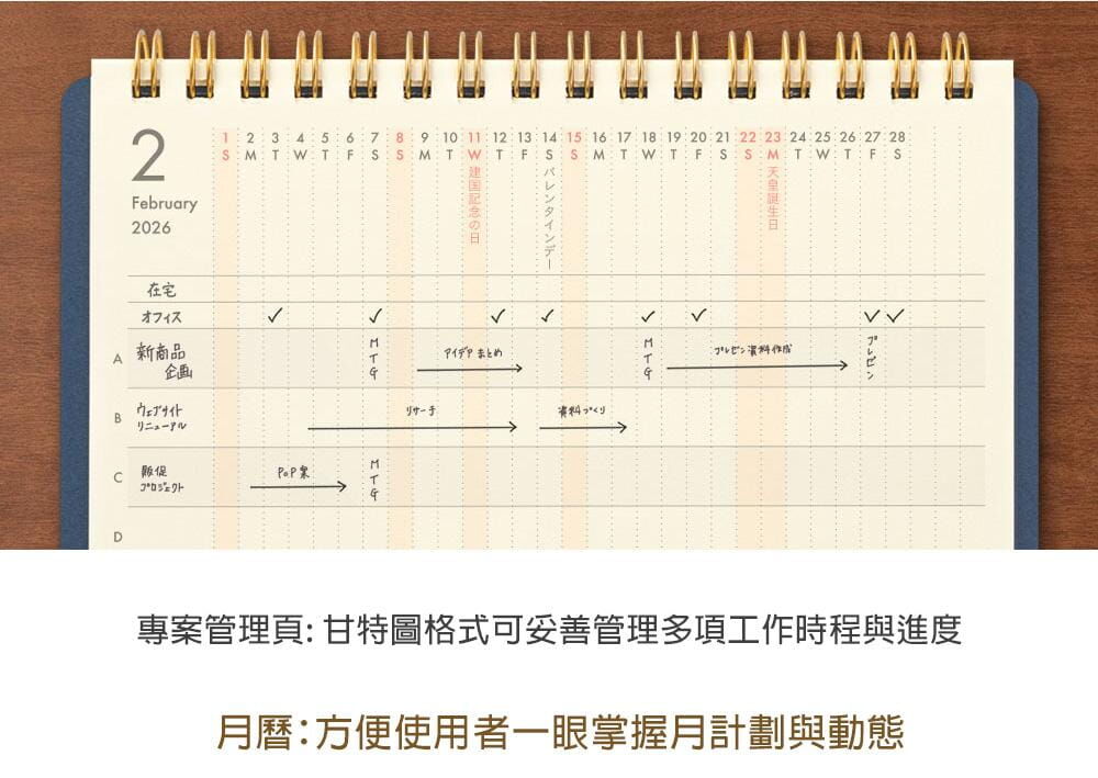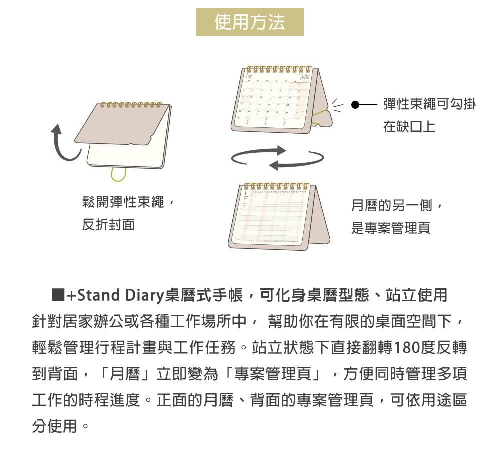 手帳可以像桌曆般直挺站立,方便隨時確認