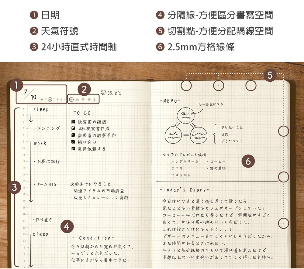 一天的內容有2頁的空間可寫,A6 文庫本尺寸雖厚但紙質輕薄好書寫