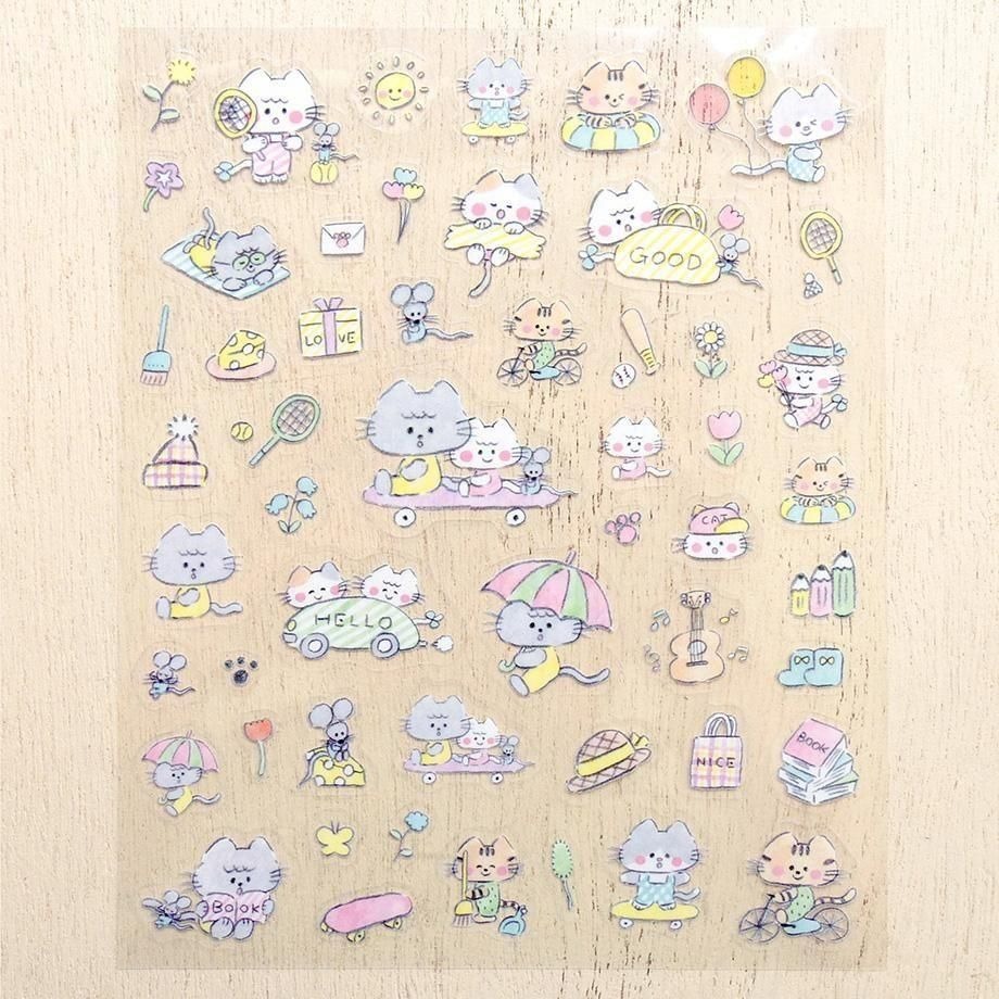 Echigawa:貓咪和休假日 透明PET貼紙|日本表現社