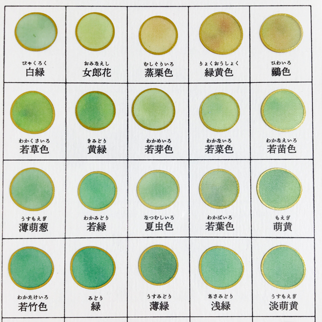 若草之色 半透+邊緣燙金圓貼|日本色見本帖