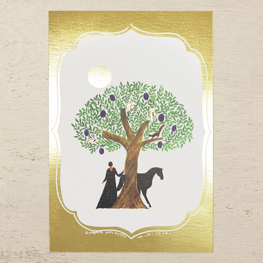 精緻的金箔壓印閃閃發光, 背面也是彩色印刷,讓明信片更有質感