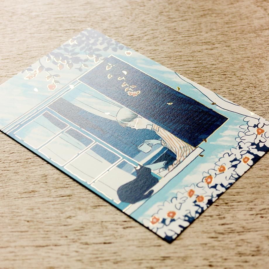 精緻的金箔壓印閃閃發光, 背面也是彩色印刷,讓明信片更有質感