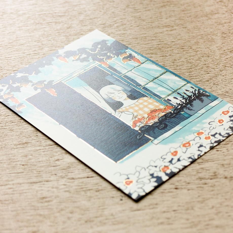 窗邊澆花 藤卷佐有梨 箔押明信片|日本表現社
