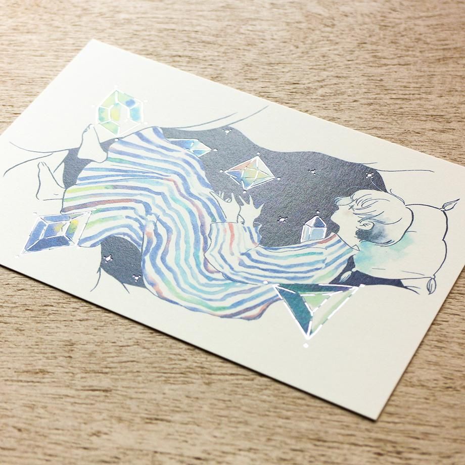 精緻的金箔壓印閃閃發光, 背面也是彩色印刷,讓明信片更有質感