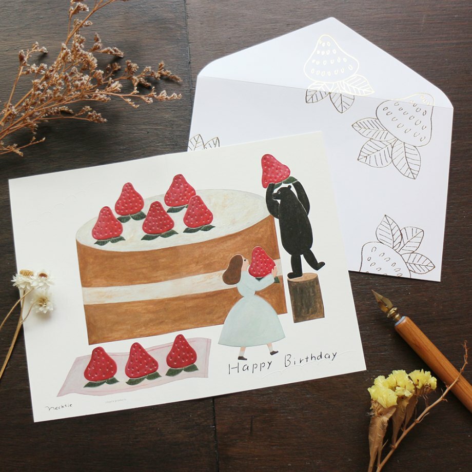 領帶:草莓蛋糕 生日卡片|日本表現社