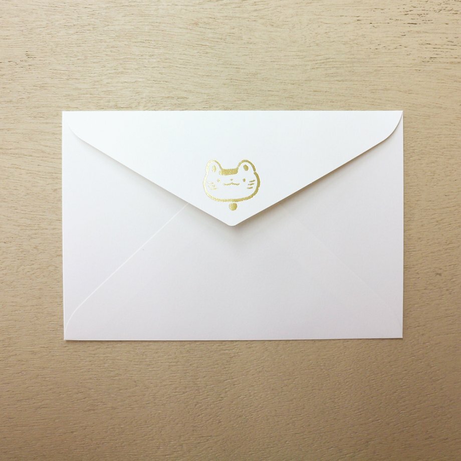 附上帶有閃閃發光的金箔郵票信封。