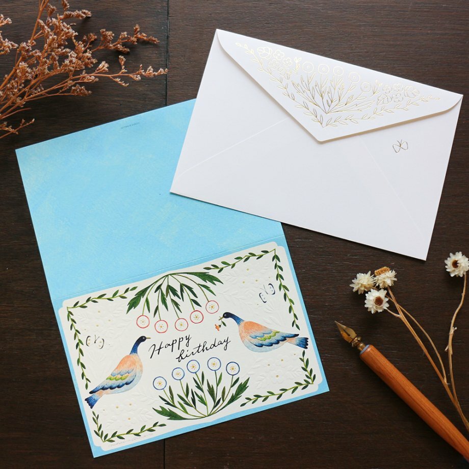 淺野綠: 花與鳥 生日卡片 賀卡|日本表現社