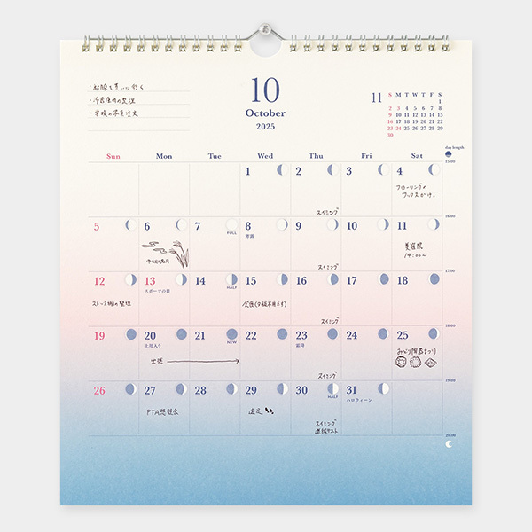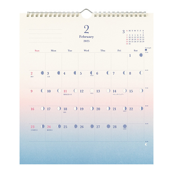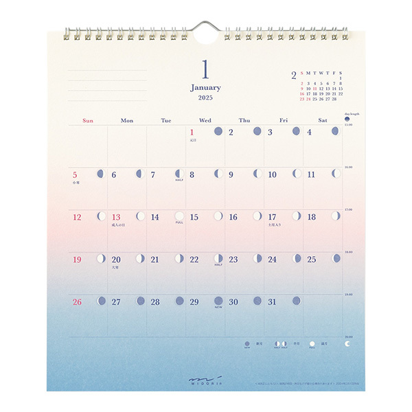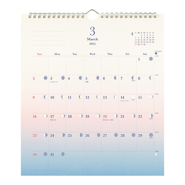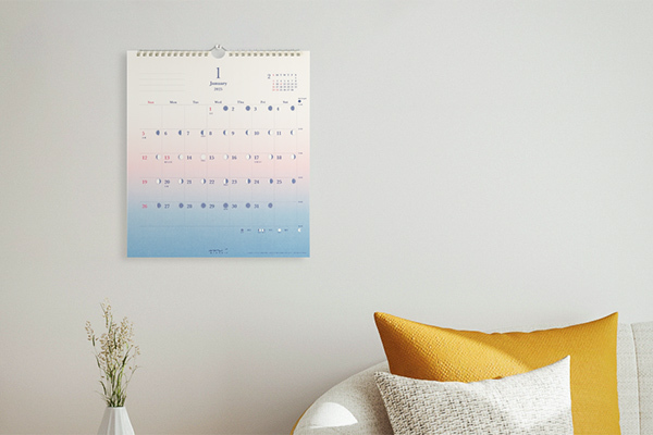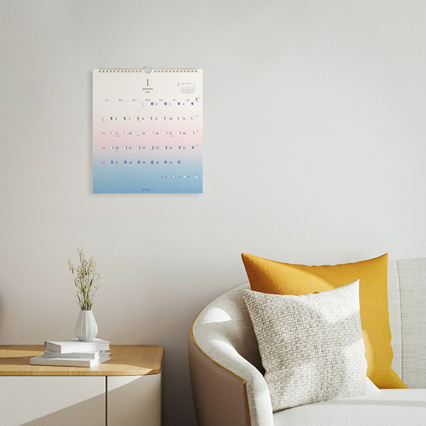 壁掛式日曆,以漸變方式表達每個月的天數長度米色紙張賦予其柔軟的質感,淺色漸層與內裝融為一體。