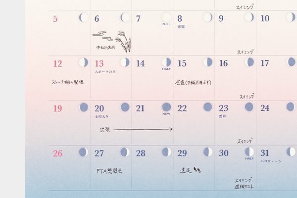 列出了“月相”、“二十四節氣”和“雜節”,讓您直觀地感受日常生活中的季節變化。