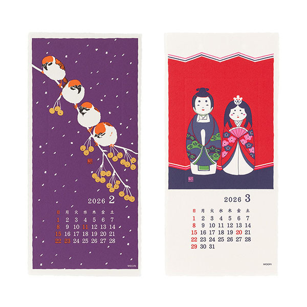 2026 越前和紙 壁掛式月曆 (S)日景物|日本MIDORI