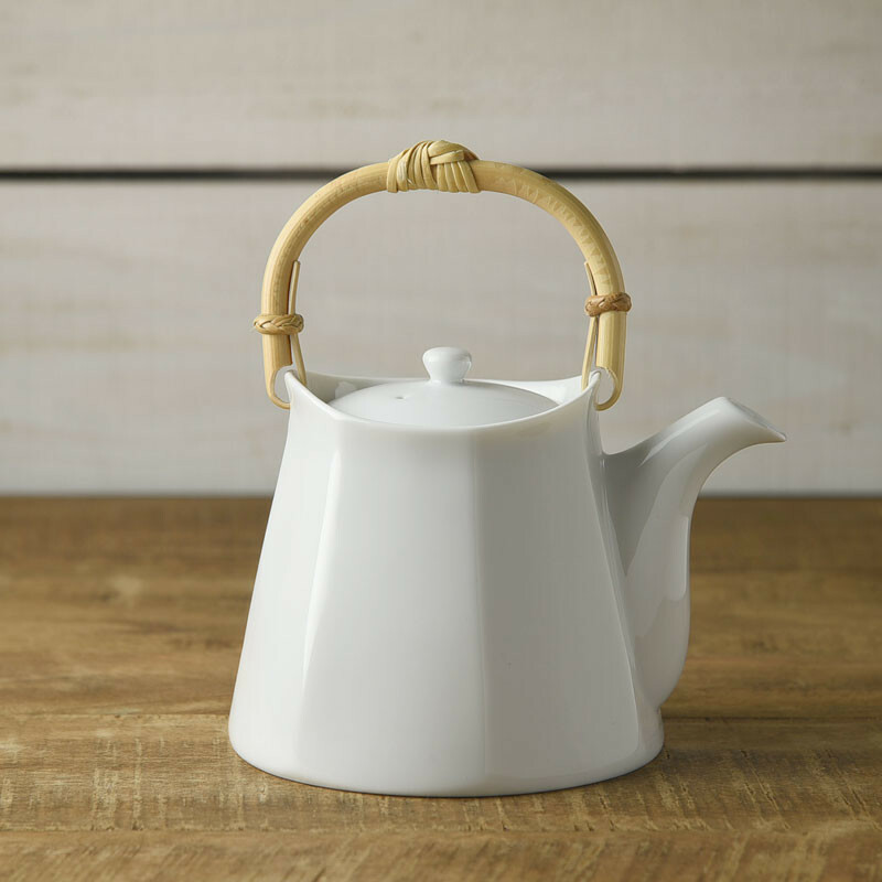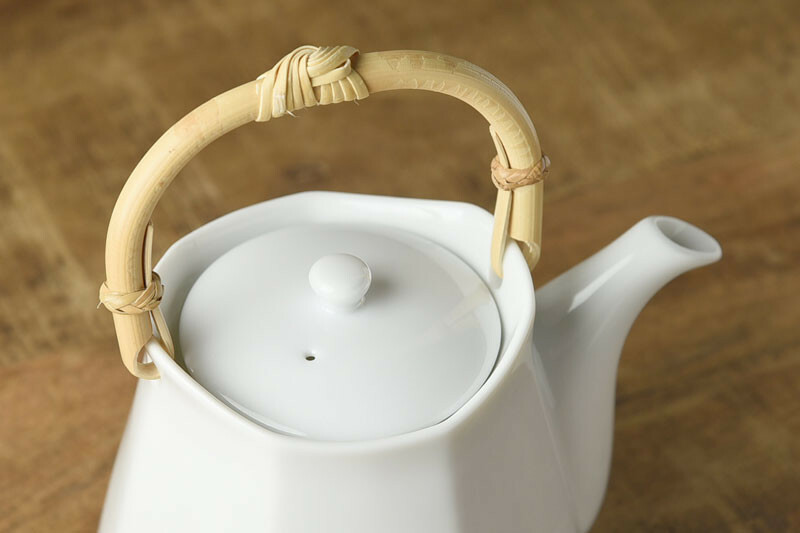 結合西、日式的設計,壺嘴如同中式茶壺,壺身像是西式茶壺,手柄竹藤蔓