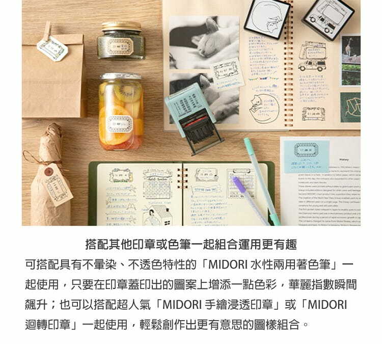 印章本體附有儲墨墊,隨時隨地都能輕鬆蓋印,只要輕輕按壓一下,充滿手繪風格的細緻圖案。