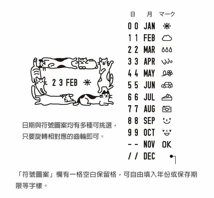 迴轉印章×1個(日期+12種圖案符號)