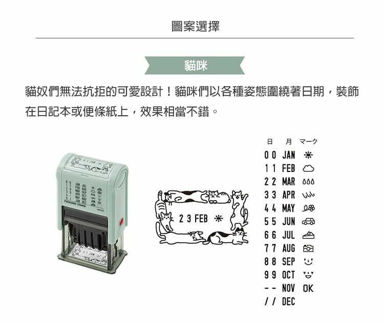 「迴轉日期印章」有可愛俏皮的圖案設計,翻轉日期章的刻板嚴肅形象。