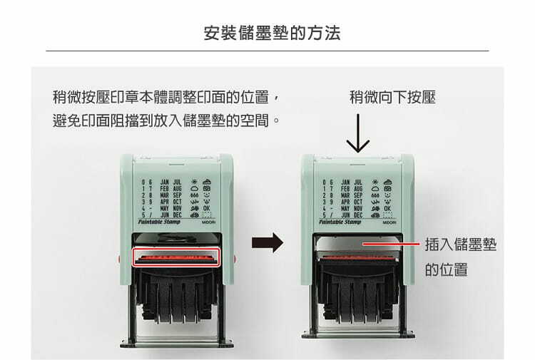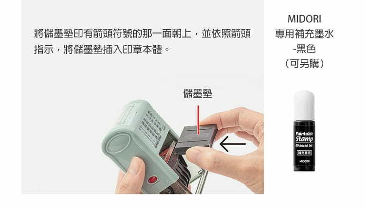 儲墨墊所附的墨水約可蓋印2000次。當蓋印圖案的墨色變淡或墨水不足時,可以另外購買補充墨水自行補充。