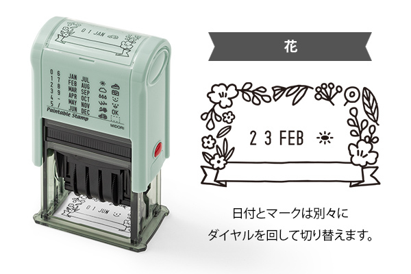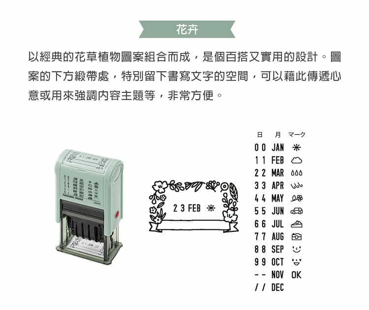 「迴轉日期印章」有可愛俏皮的圖案設計,翻轉日期章的刻板嚴肅形象。