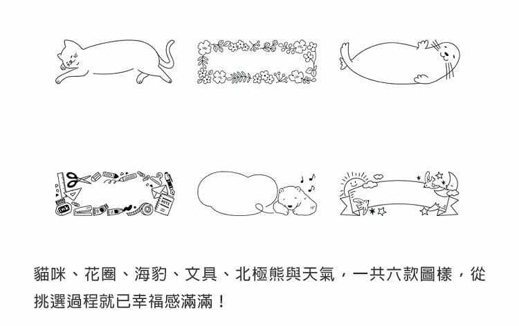 有著手繪般可愛圖樣的手繪浸透印章,信手一蓋,細節線條也完美呈現。