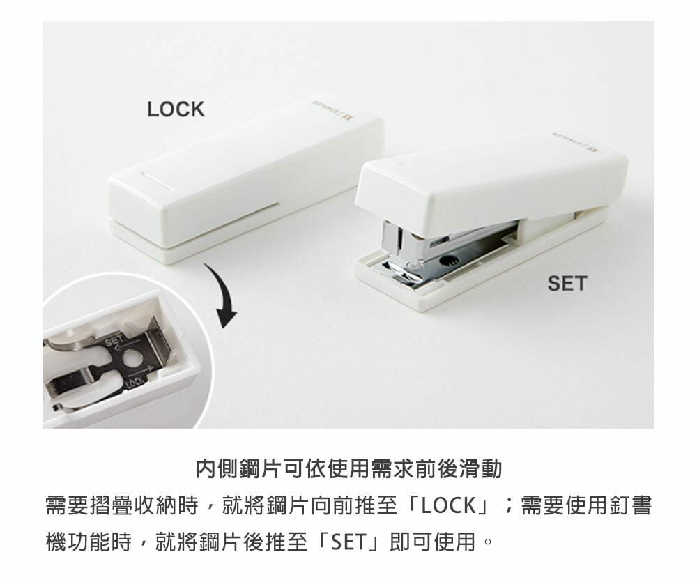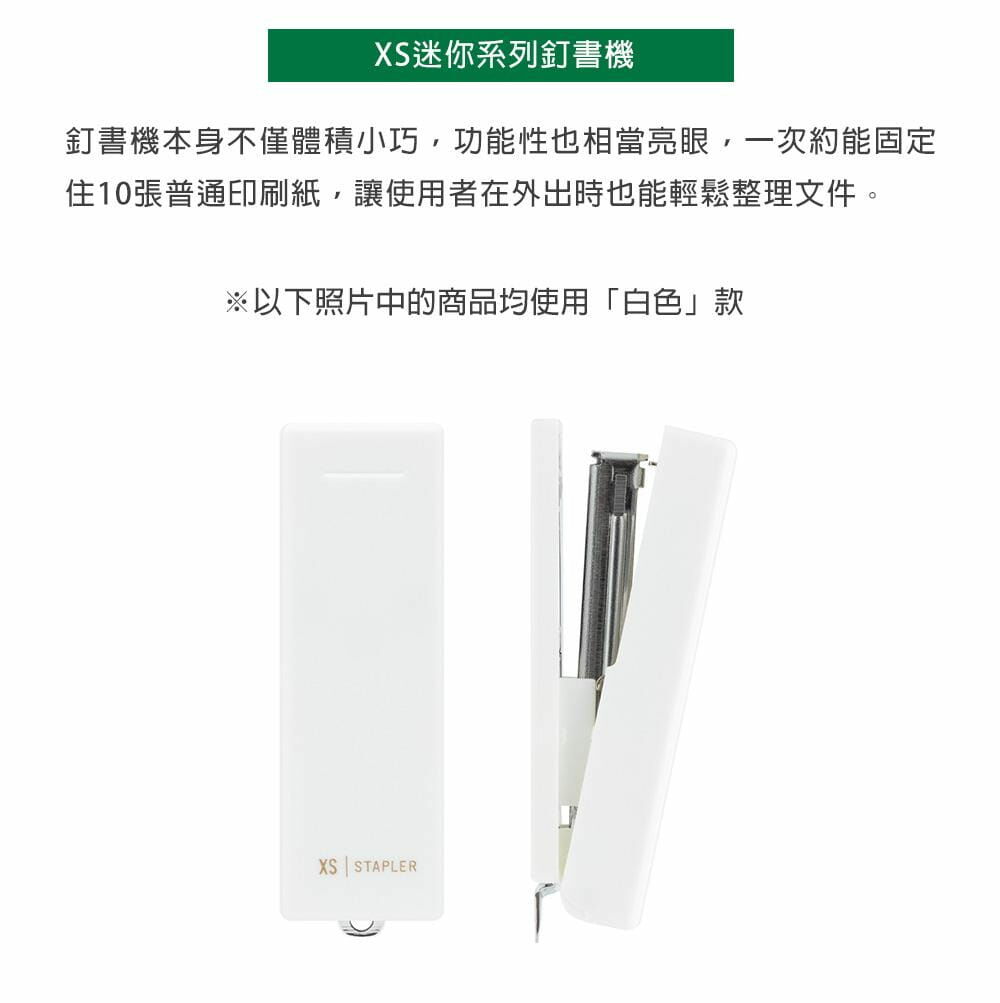 本款迷你釘書機可以摺疊收納,不僅體積小巧,功能性也相當亮眼,一次約能固定住10張普通印刷紙,讓使用者在外出時也能輕鬆整理文件