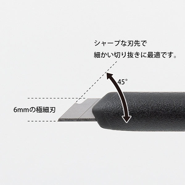 僅6mm厚度的極細刀刃,銳利的刀尖最適合用來裁切細微的地方。