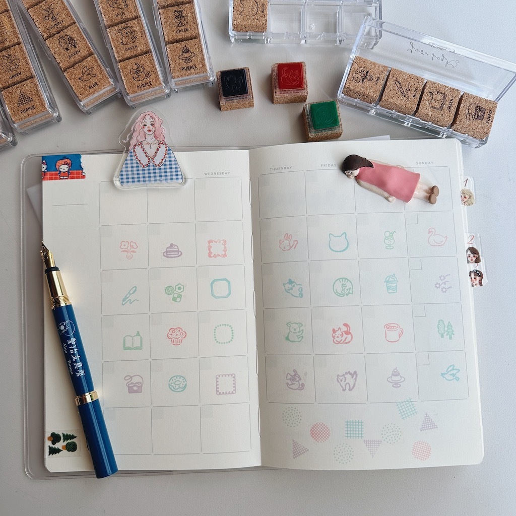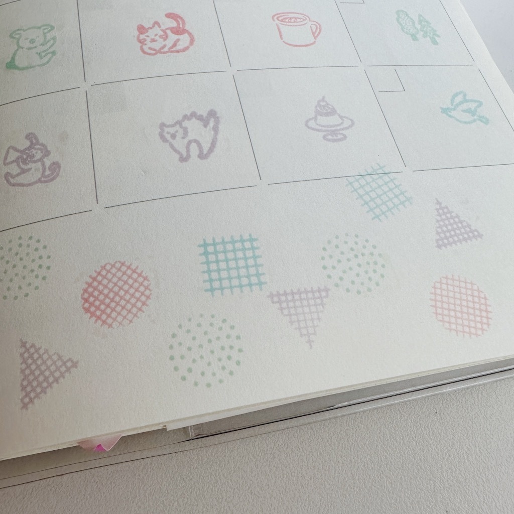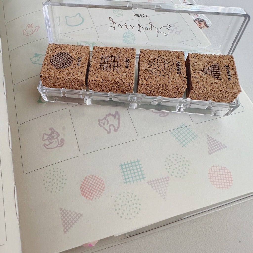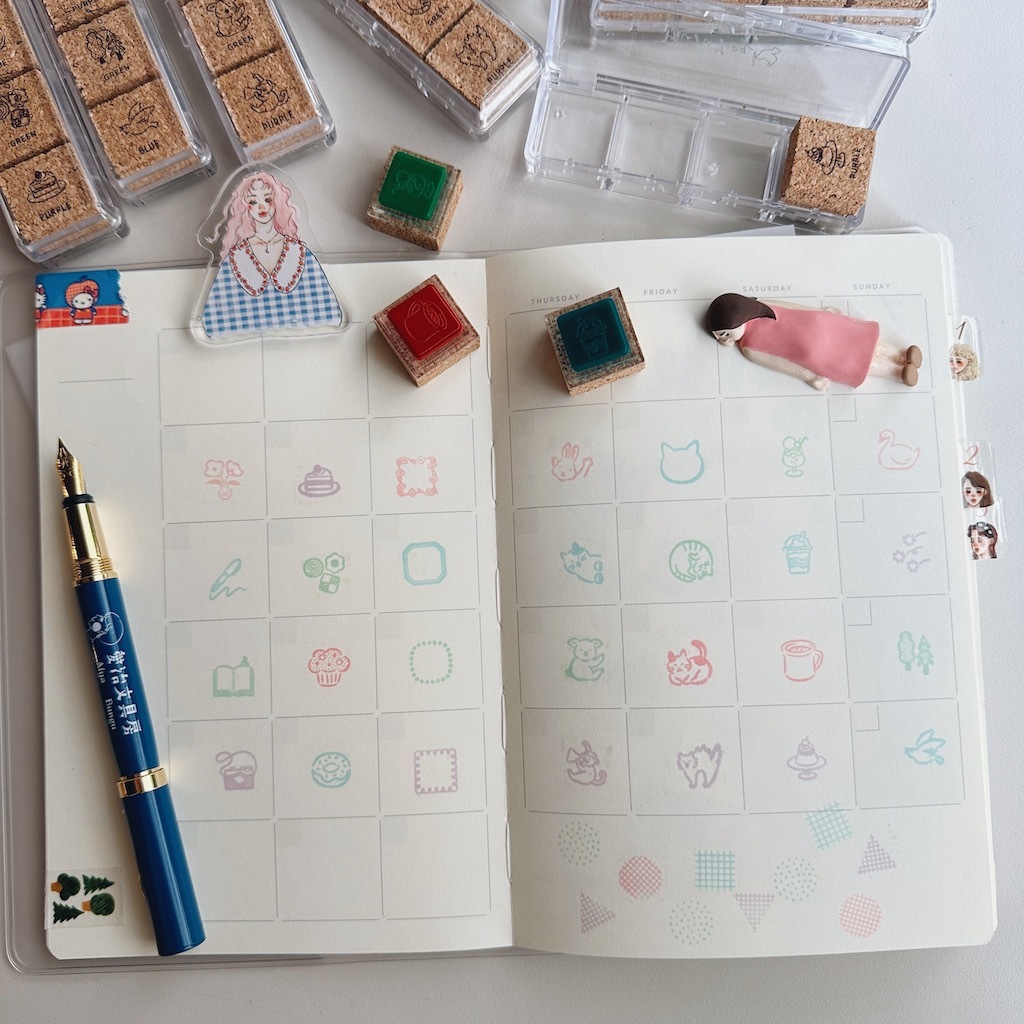 這款印章組內含不影響筆記裝飾的柔和四色(粉紅、紫色、藍色、綠色),只需輕輕一壓,就能輕鬆蓋出清晰圖案,為每日記錄增添輕鬆又愉快的氛圍。