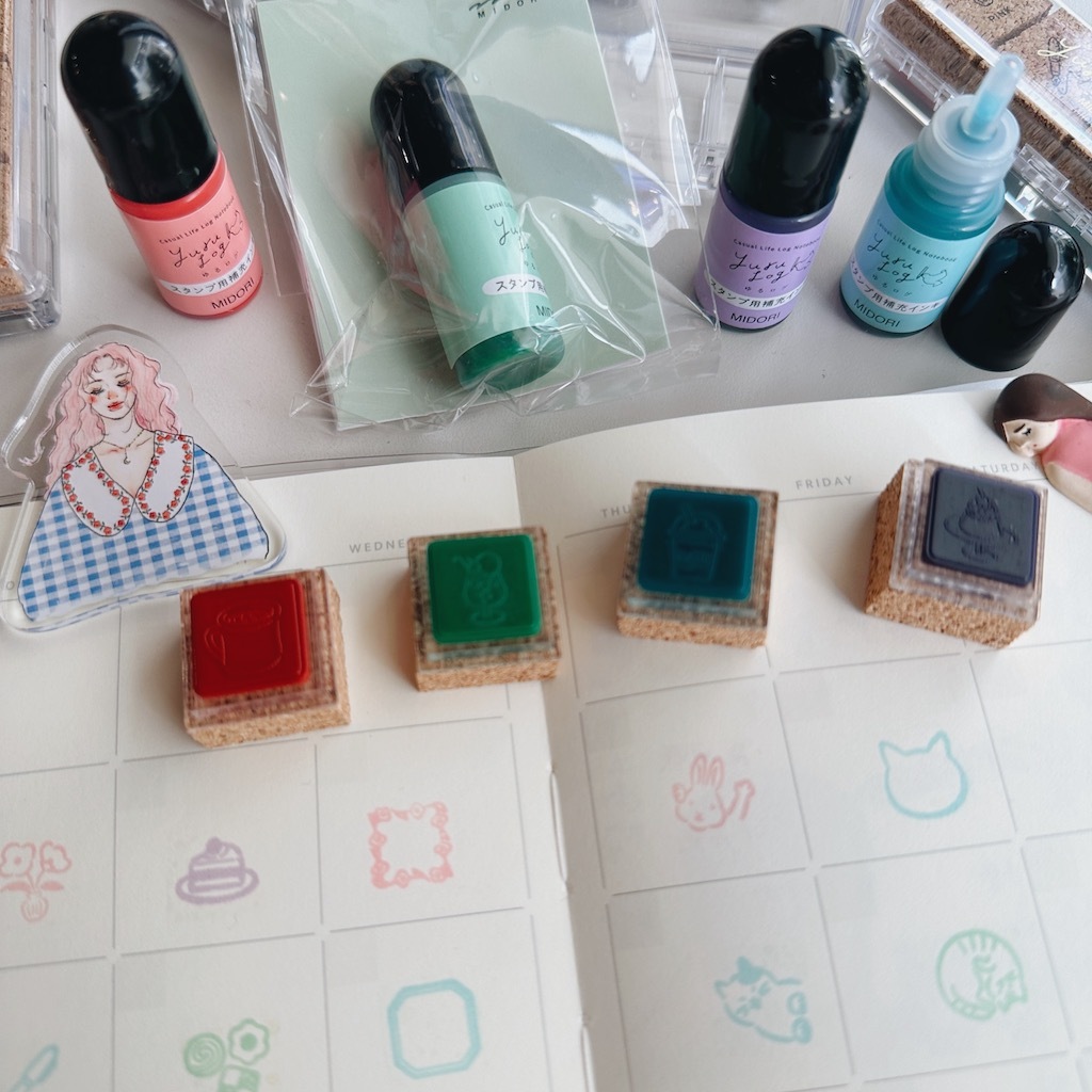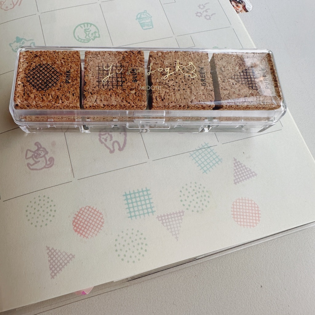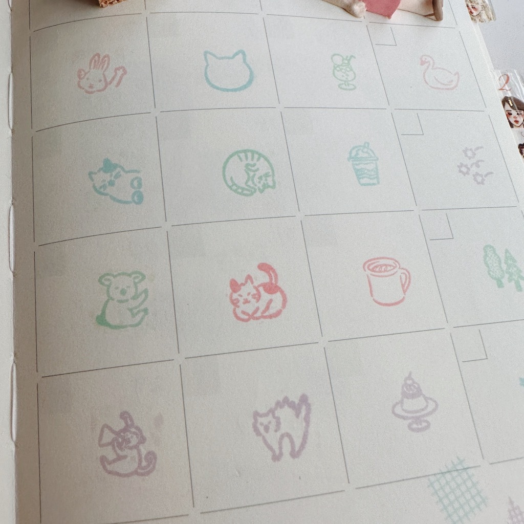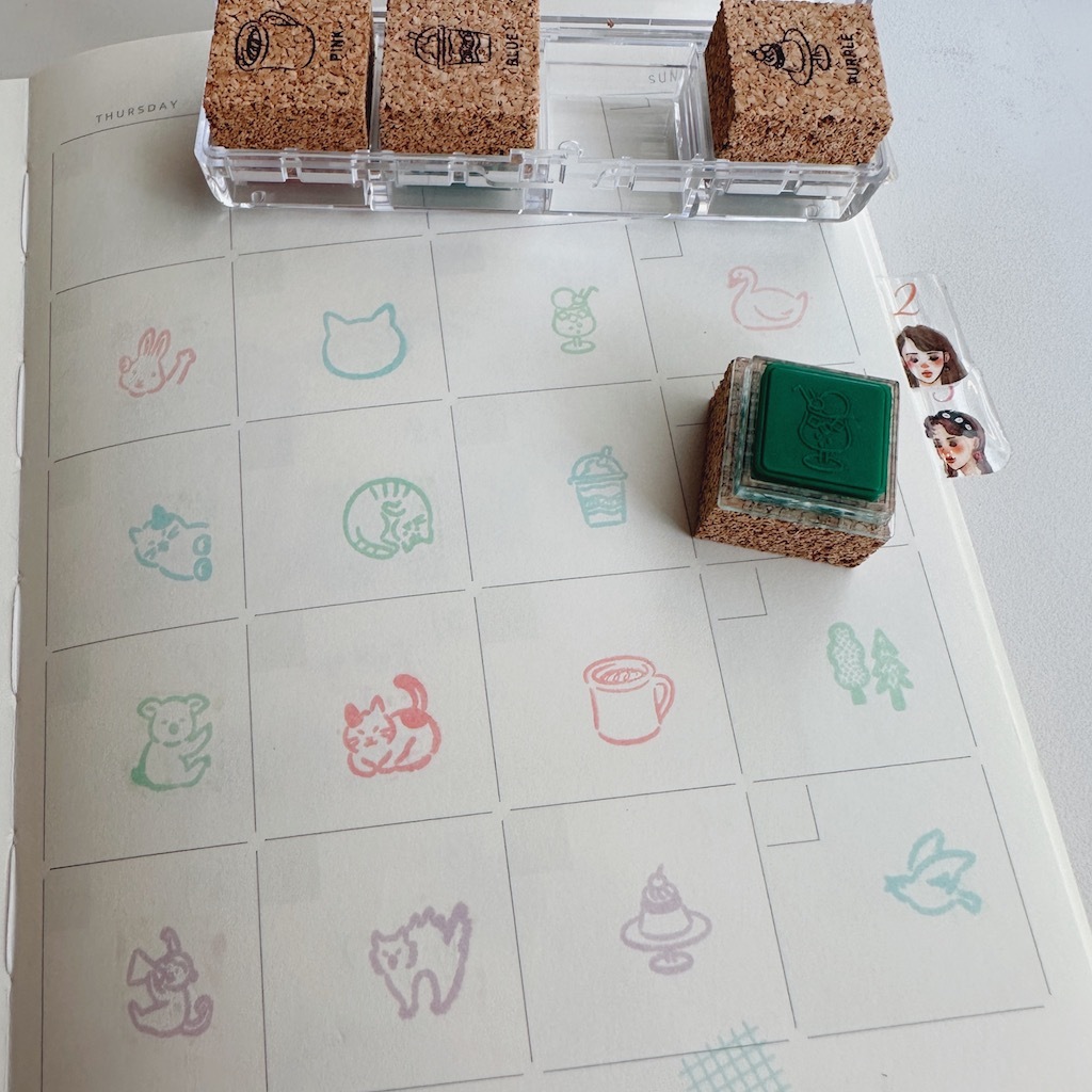 這款印章組內含不影響筆記裝飾的柔和四色(粉紅、紫色、藍色、綠色),只需輕輕一壓,就能輕鬆蓋出清晰圖案,為每日記錄增添輕鬆又愉快的氛圍。