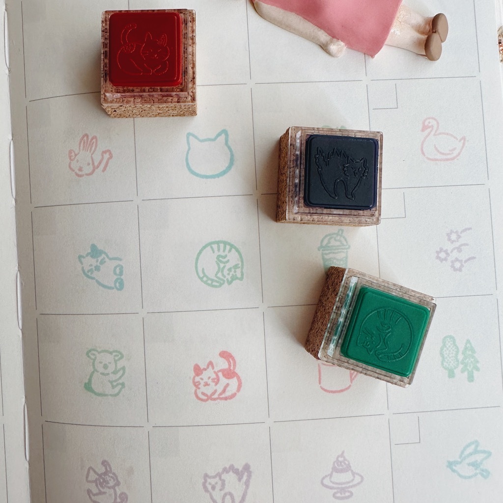 貓咪 Yuru Log 軟木浸透印章 4入|日本MIDORI