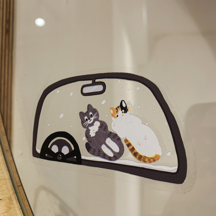 貓咪降落—貓停留在車窗上,想進來吹暖氣。也提醒車主在寒冬起動車子前,可以拍拍引擎蓋,也許有小貓躲在裡面睡覺。